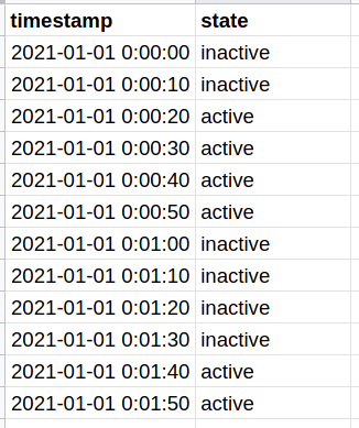 - Next, figure out the “points” where the state of your entity changes from one to another by comparing current row and a previous row. ID these “switch points”.