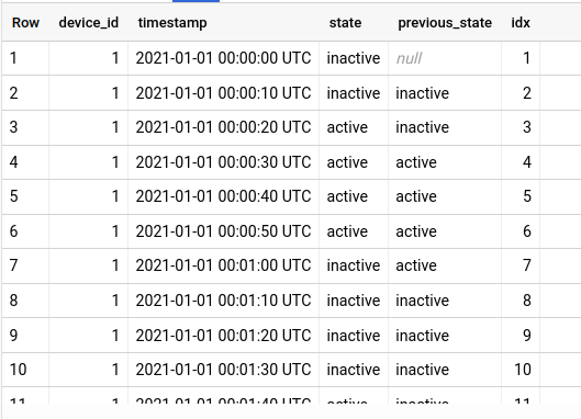 , lag(state, 1) over (partition by device_id order by timestamp) as previous_state