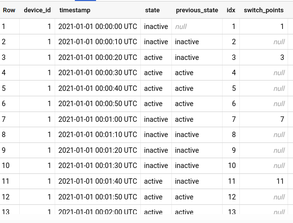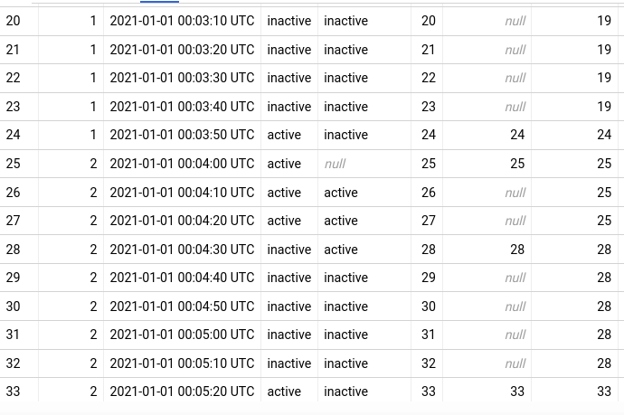 In step 2 and 3 above, we made use of NULLs and BigQuery’s last_value()