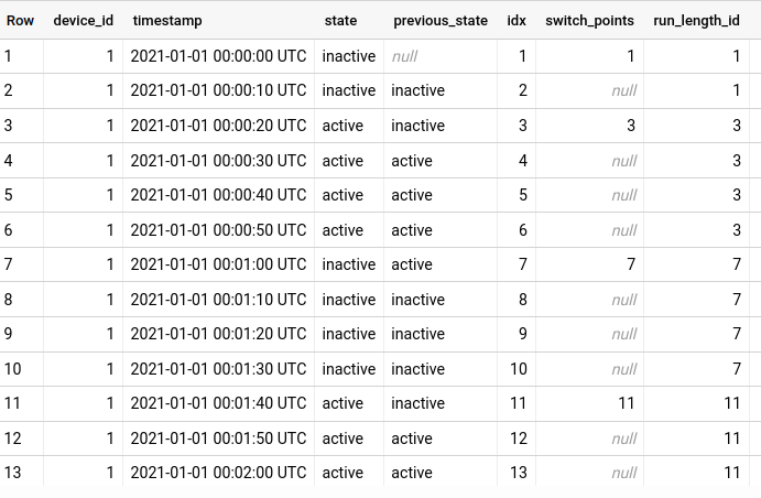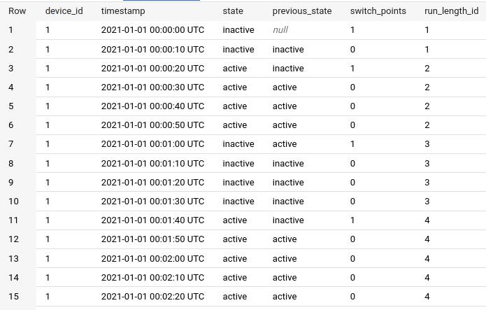 , sum(switch_points) over (partition by device_id order by timestamp) as run_length_id
